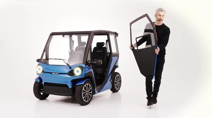 The Squad is equipped with the latest solar panels that provide the vehicle with a driving range of 130 கிமீ (cloudy) to 30km (sunny) per day. The category of the vehicle is light four-wheeled EV (L6e).